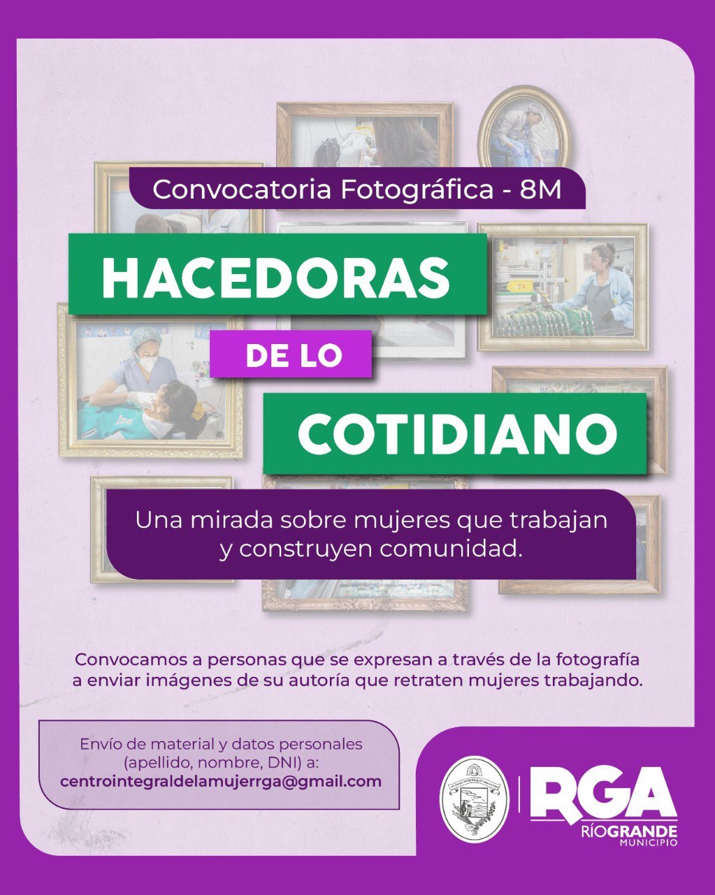 El Municipio de Río Grande, a través de la Secretaría de Género y Desarrollo Comunitario, en el marco del Día de la Mujer Trabajadora, informa que se encuentra abierta la convocatoria para participar de la muestra fotográfica “Hacedoras de lo cotidiano”: una mirada sobre mujeres que trabajan y construyen comunidad.