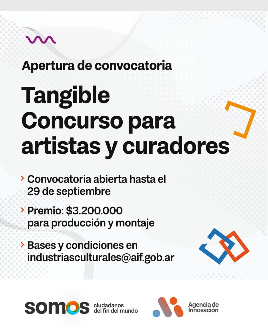 La Secretaría de Cultura de la provincia de Tierra del Fuego AIAS abrió la convocatoria para una nueva edición de ‘Tangible’, concurso para artistas y curadores, el cual se enfoca en visibilizar el rol del curador de arte en la provincia y propone la realización de una muestra de artes visuales en el Museo Fueguino de Arte Niní Bernardello.