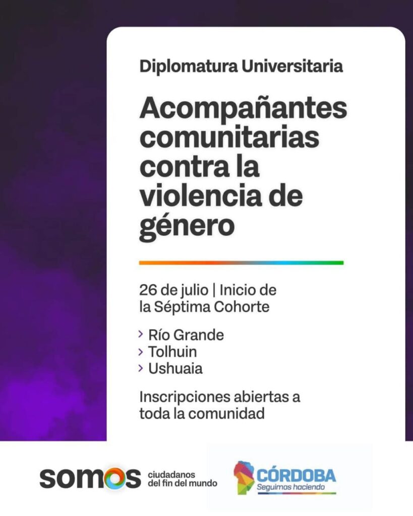 Dará inicio el 26 de julio la 7ma Cohorte de la “Diplomatura Universitaria en Acompañantes Comunitarias contra la violencia de Género”, organizada conjuntamente entre el Ministerio de Bienestar Ciudadano y Justicia del Gobierno de Tierra del Fuego y la Secretaría de la Mujer de la Provincia de Córdoba.