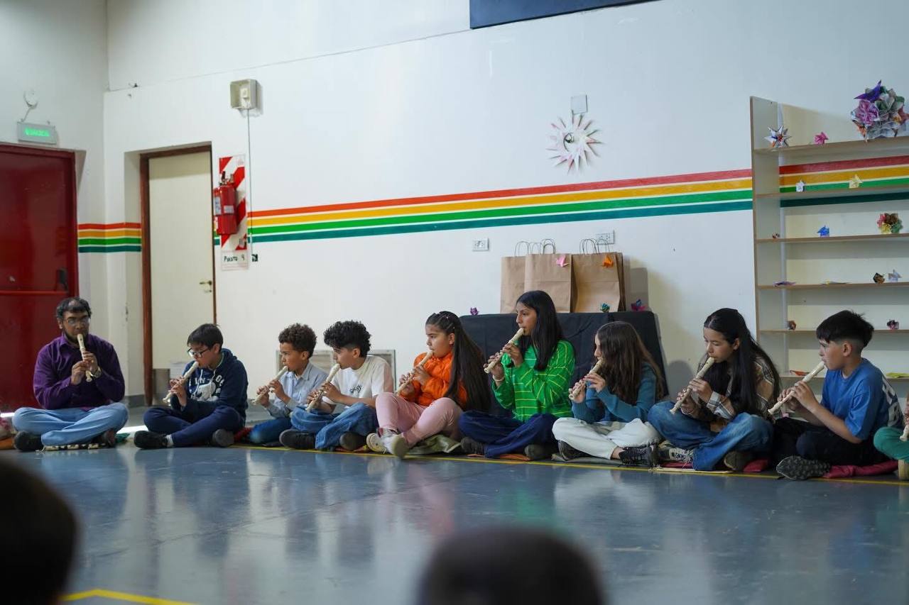 Durante el evento de cierre de año la comunidad educativa exhibió trabajos, presentó canciones y ofreció interpretaciones en flauta de su cancionero escolar.