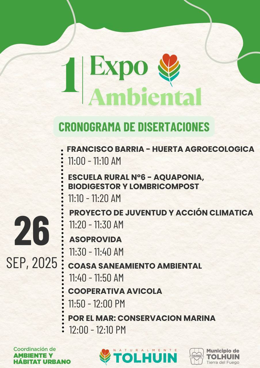 El próximo viernes 26 de septiembre, Tolhuin será sede de un evento que busca poner al ambiente en el centro de la agenda local. Se trata de la Expo Ambiental, organizada por la Coordinación de Ambiente y Hábitat Urbano del Municipio, que tendrá lugar en el Polideportivo Ezequiel Rivero entre las 10 y las 17:30 horas.