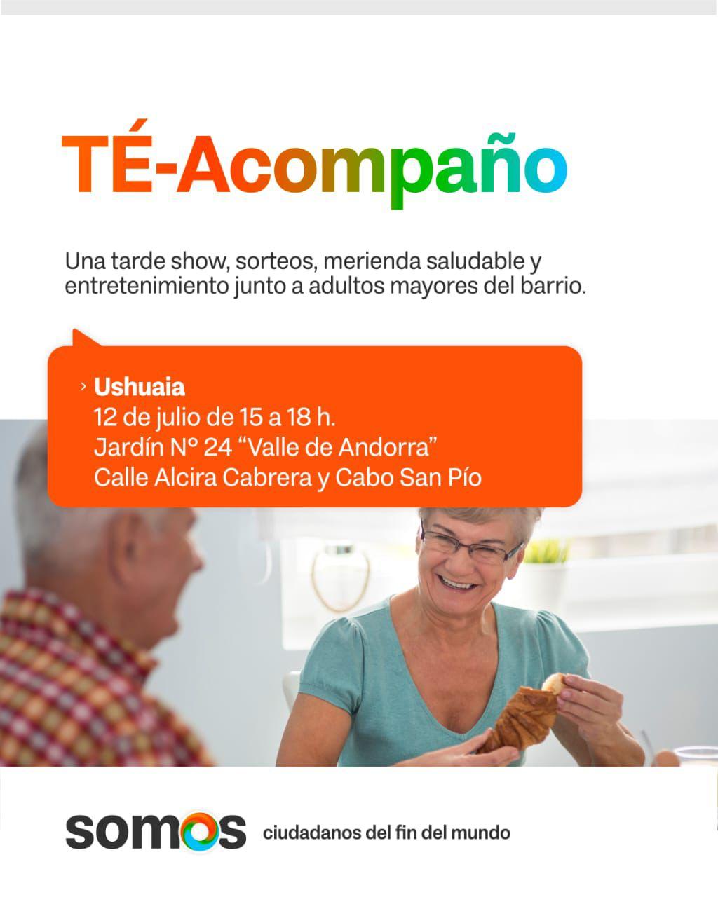 El Gobierno de la Provincia invita a la comunidad a participar de una nueva edición de ‘TÉ-Acompaño’, un evento abierto y destinado a las personas mayores, en esta ocasión de la ciudad de Ushuaia, con el objetivo de compartir una tarde de encuentro y recreación.