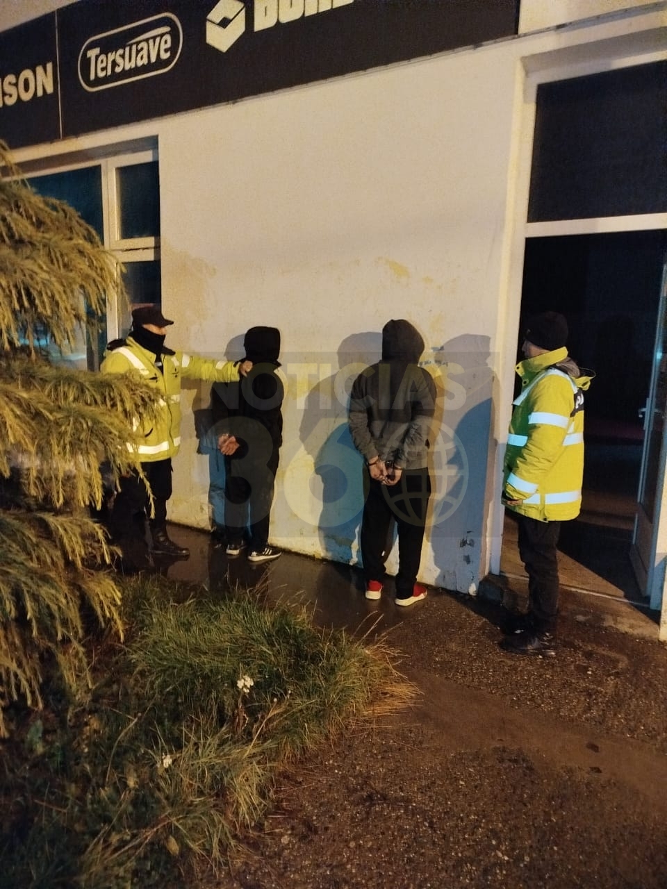 Inmediatamente, el personal policial de la Comisaría Segunda se dirigió al lugar y, al llegar, constató que la puerta de acceso al establecimiento había sido forzada. En el interior del local, los agentes encontraron a dos individuos, quienes fueron identificados como Gabriel Saúl Aravena, de 34 años de edad, y Leonardo Martín Méndez Rojo, de 35 años de edad.
