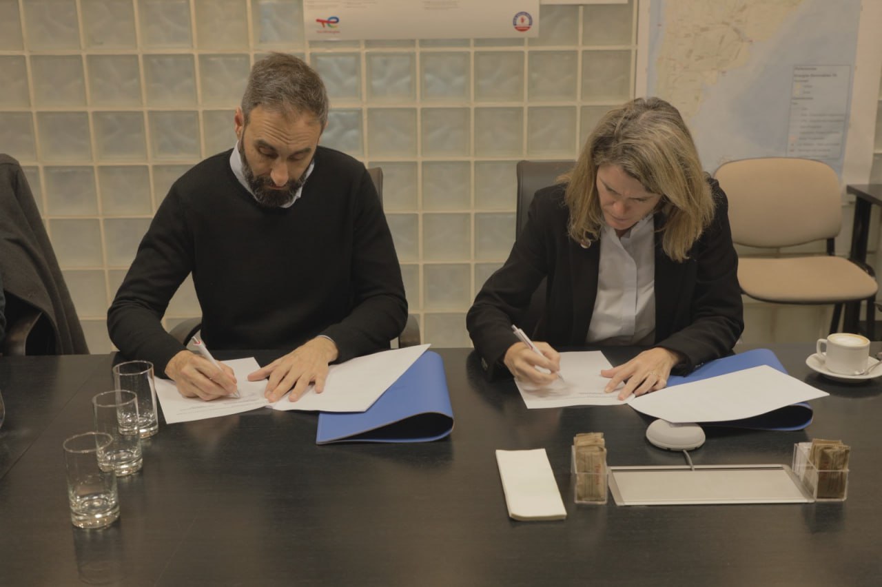 Catherine Remy, Directora General de Total Austral y el presidente de Terra Ignis S.A. Maximiliano D´Alessio, rubricaron un convenio de colaboración que contempla asesoramiento técnico para una mejor explotación de los recursos hidrocarburíferos de Tierra del Fuego AIAS.