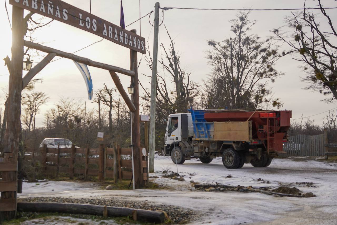 En Tolhuin, la Dirección de Servicios Públicos del Municipio llevó adelante un operativo de tirada de tierra en las calles de acceso a los alojamientos turísticos de la ciudad.