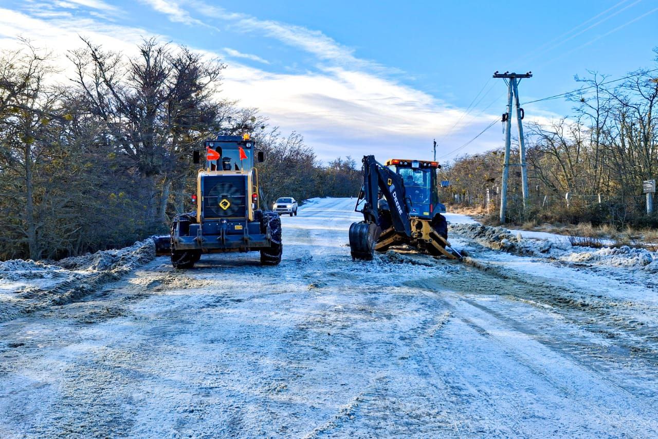 En el marco del Operativo Invierno, la Dirección Provincial de Vialidad ejecuta trabajos intensivos en sectores críticos de la ruta que atraviesa la Ciudad de Tolhuin, una vía fundamental tanto para el tránsito cotidiano de los vecinos como para el movimiento turístico. Las tareas incluyen despeje de hielo, reparación de la calzada y cuneteo en zonas afectadas por las bajas temperaturas y el congelamiento del terreno.