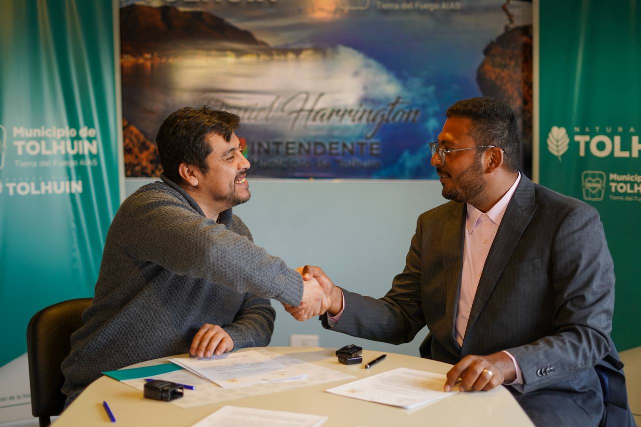 En el marco de una agenda de intercambio y fortalecimiento de vínculos internacionales, el Intendente de Tolhuin, Daniel Harrington, firmó un Convenio de Colaboración con el Intendente de Cantarranas (Honduras), Marco Guzmán Zelaya, con el objetivo de promover el trabajo conjunto en áreas clave como cultura, turismo, producción, desarrollo social y educación.