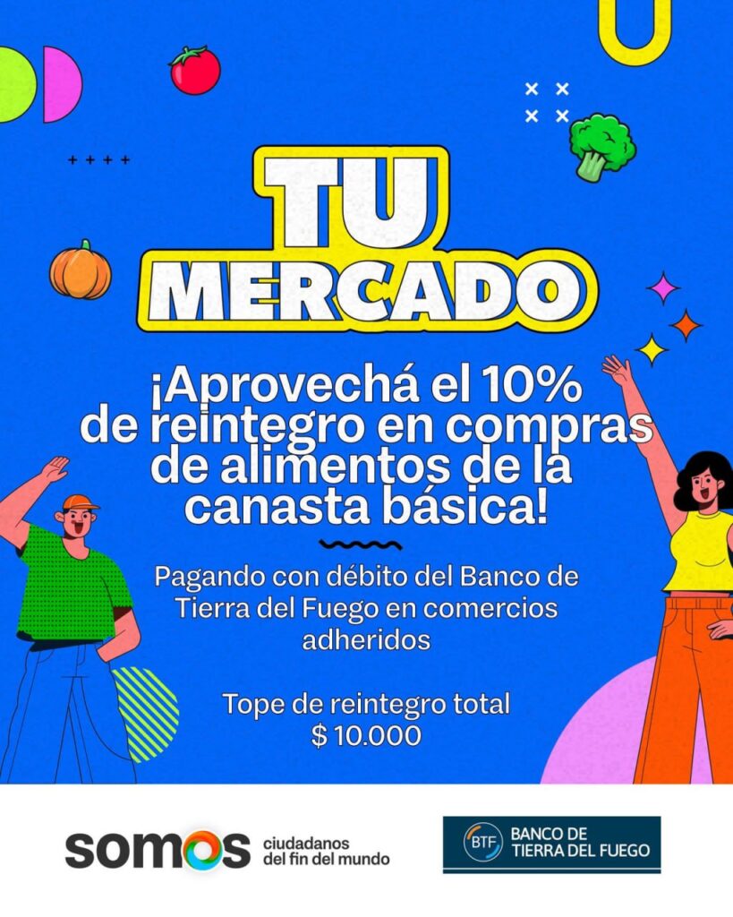 Además, quienes cuenten con tarjeta del Banco de Tierra del Fuego podrán acceder a reintegros del 10% en comercios adheridos, con un tope de $10.000. Este fin de semana, el paseo es en Tu Mercado. Acercate y descubrí todo lo que la comunidad fueguina tiene para ofrecer.