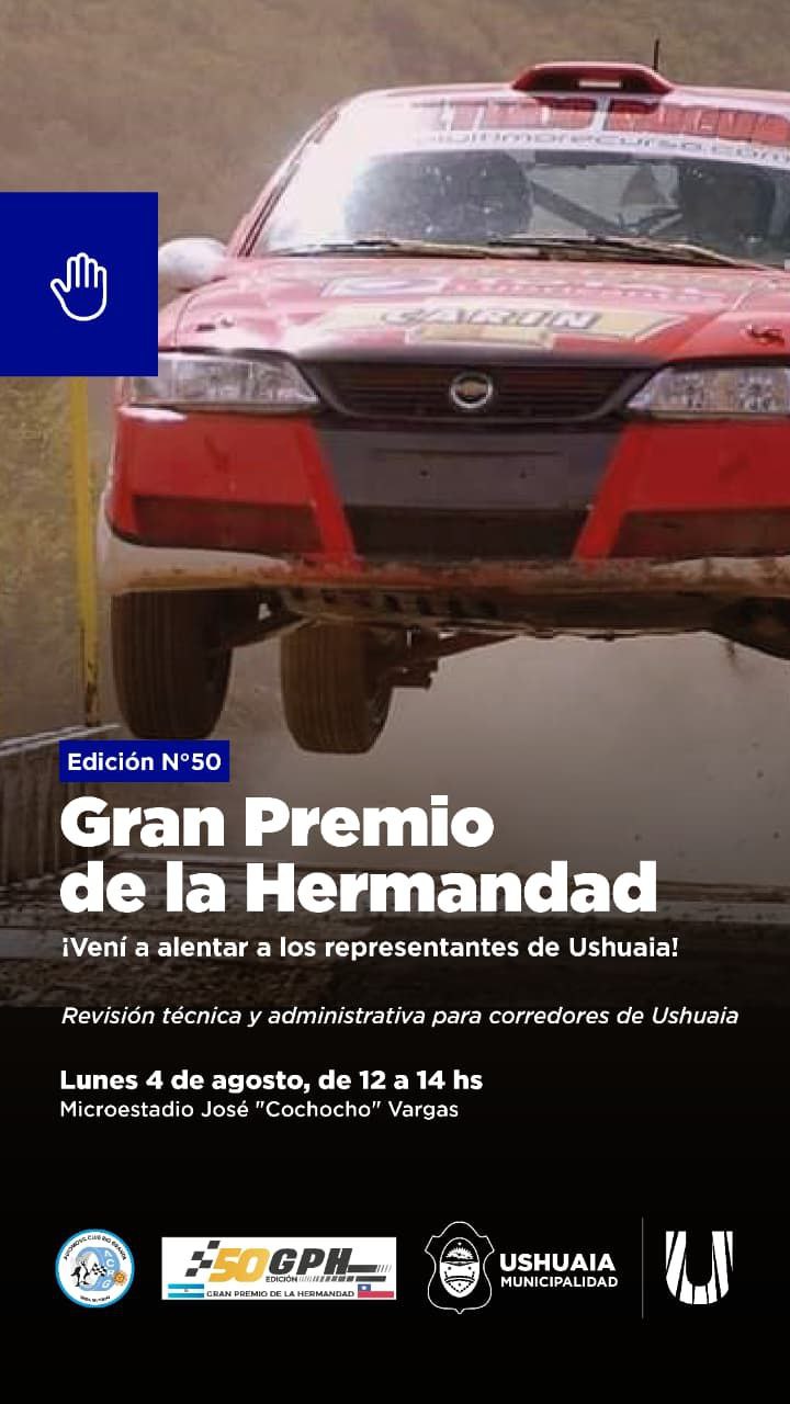 La Municipalidad de Ushuaia, a través del Instituto Municipal de Deportes (IMD), invita a la comunidad a participar de la revisión técnica y administrativa de los corredores de la ciudad que formarán parte de la 50° edición del Gran Premio de la Hermandad 2025, una competencia histórica que se correrá del 15 al 17 de agosto, uniendo una vez más a los pueblos de Río Grande (Argentina) y Porvenir (Chile).
