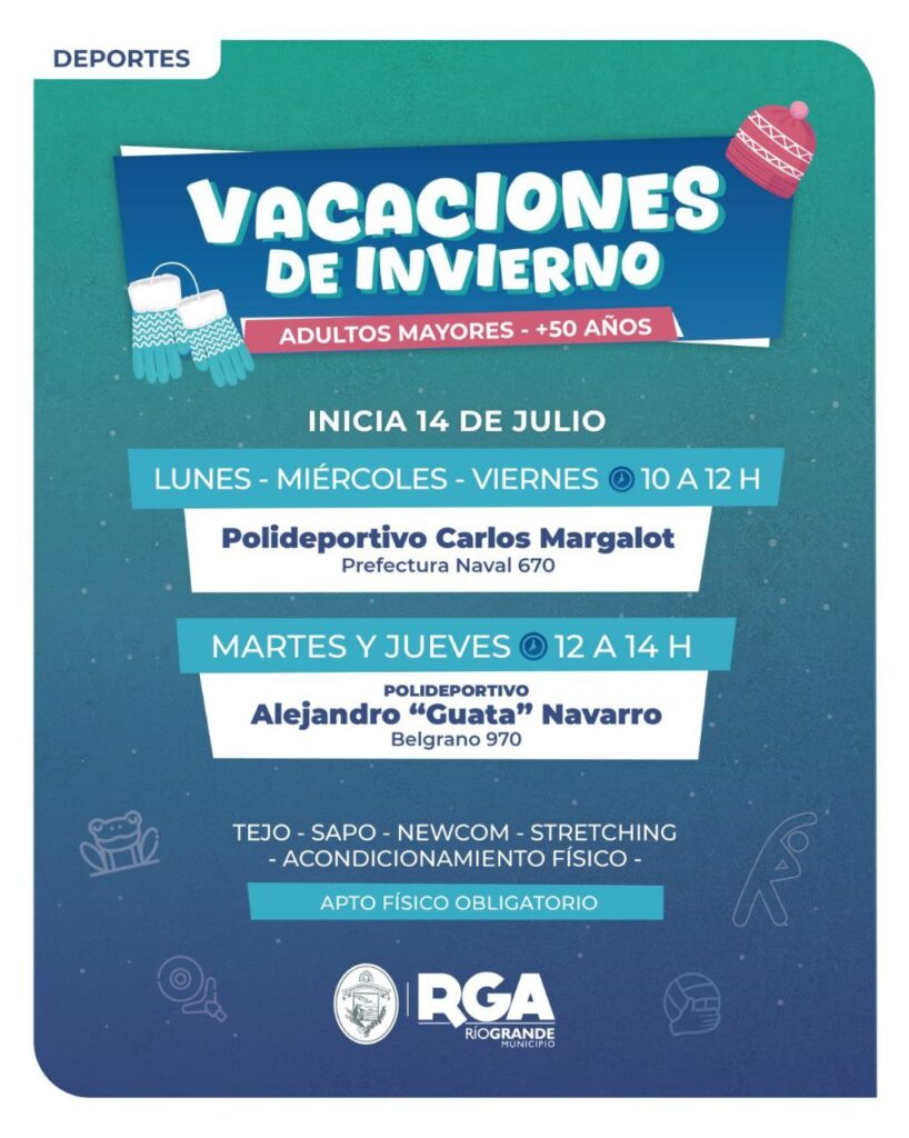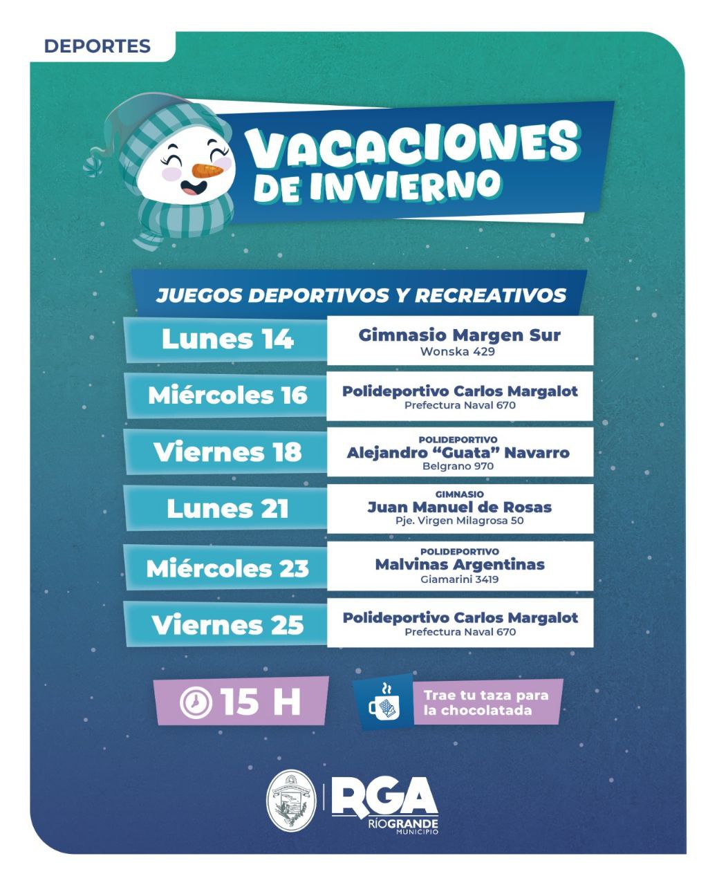 Con el objetivo de acercar el deporte y la recreación a cada barrio de la ciudad, el Municipio de Río Grande invita a la comunidad a participar de las Jornadas Recreativas y Deportivas de Invierno 2025, una propuesta gratuita destinada a niños y niñas de entre 4 y 13 años, así como a adultos mayores.