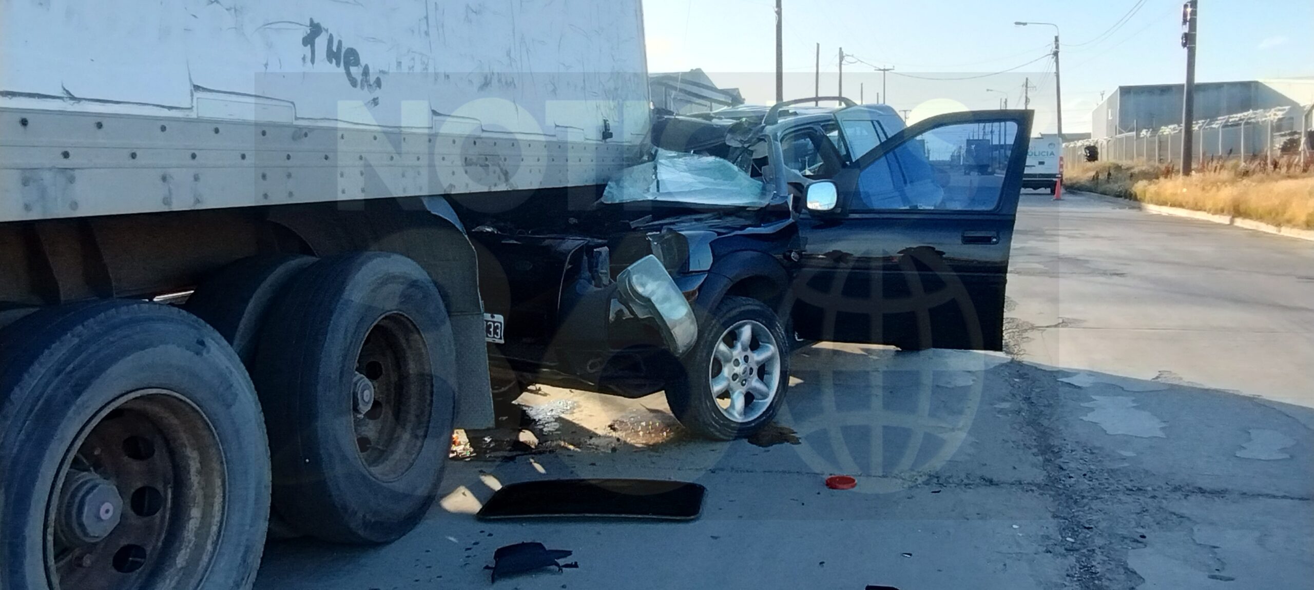 La destrucción de la camioneta fue total ya que impactó con el lateral derecho de dicho vehículo destruyendo paragolpes delantero, parabrisa delantero y parte del techo de la camioneta, a ello sumado la activación de los airbag.