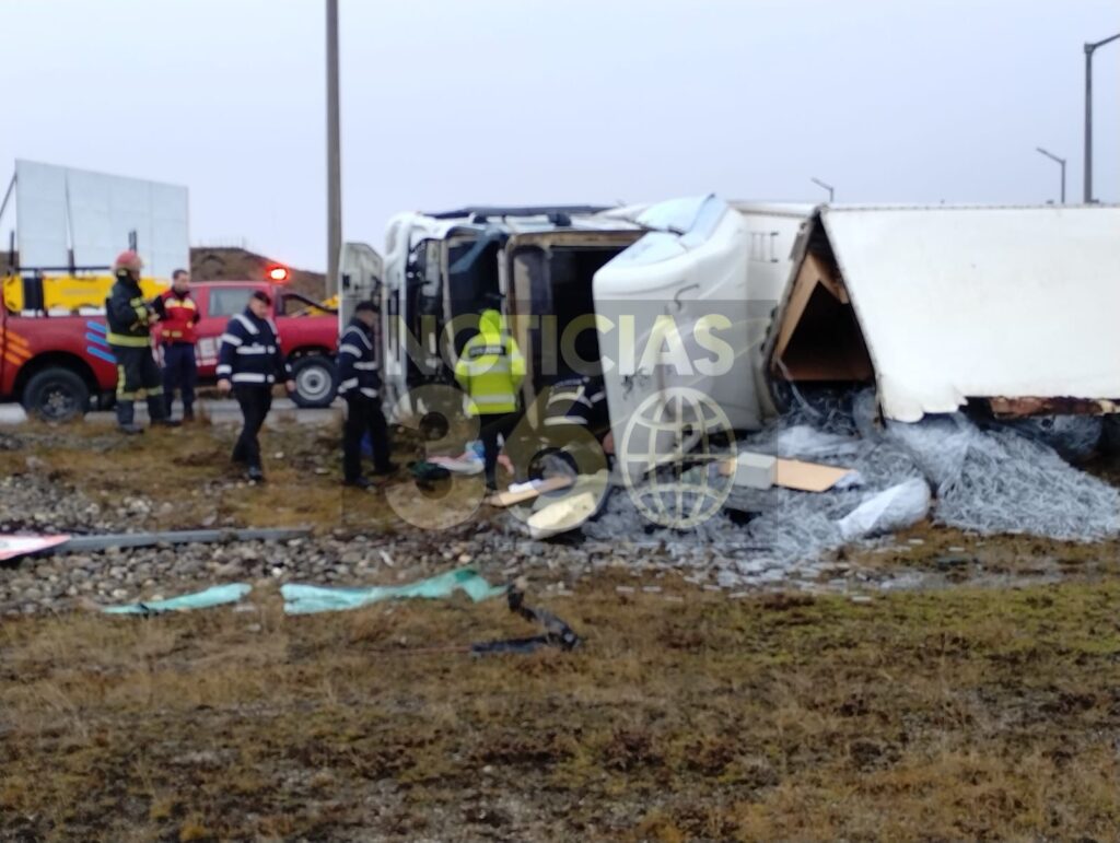 Un camión marca Iveco, modelo Stralis, de color blanco, con acoplado, volcó. El accidente ocurrió en el mediodía de éste domingo 6 de julio y movilizó a los servicios de emergencia de la zona.